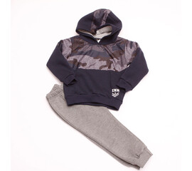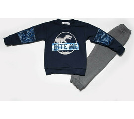 Σέτ φόρμες παντελόνι με μπλούζα φούτερ με σχέδιο δεινόσαυρο..  Χρώματα: Μπλέ φούτερ με γκρί παντελόνι Πράσινη φούτερ με μαύρο παντελόνι Τα παντελόνια διαθέτουν λάστιχο στη μέση για καλύτερη στήριξη