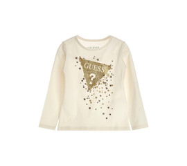 Μπλούζα μακρυμάνικη με στρογγυλή λαιμόκοψη σε εκρού απόχρωση. Διαθέτει σχέδιο με λογότυπο στο κέντρο σε χρυσή ιριδίζον απόχρωση
