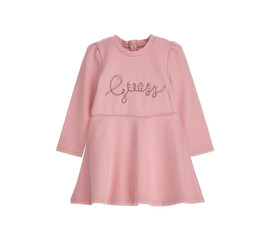 Φόρεμα μακρυμάνικο με σχέδιο την επωνυμία της μάρκας, σε ρόζ και κόκκινη απόχρωση. Διαθέτει φερμουάρ στην πλάτη για μεγαλύτερη ευκολία.
