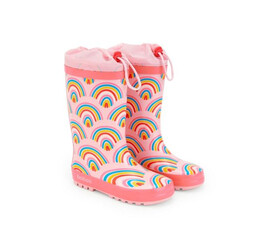 Παιδικές Γαλότσες με μοτίβο απο ουράνια τόξα σε ρόζ απόχρωση , με αντιολισθητική σόλα και κλείσιμο επάνω με κορδόνι περίσφυξης